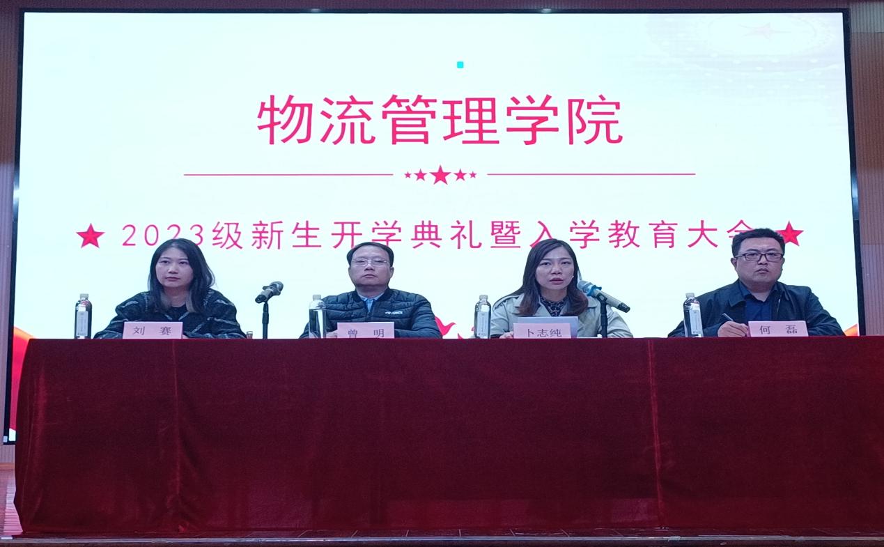 10月7日下午,物流管理学院在学校体艺馆举行2023级新生入学教育大会。学院党总支书记卜志纯、院长曾明、团总支书记刘赛及全体新生辅导员出席大会。学生干事何磊主持大会。