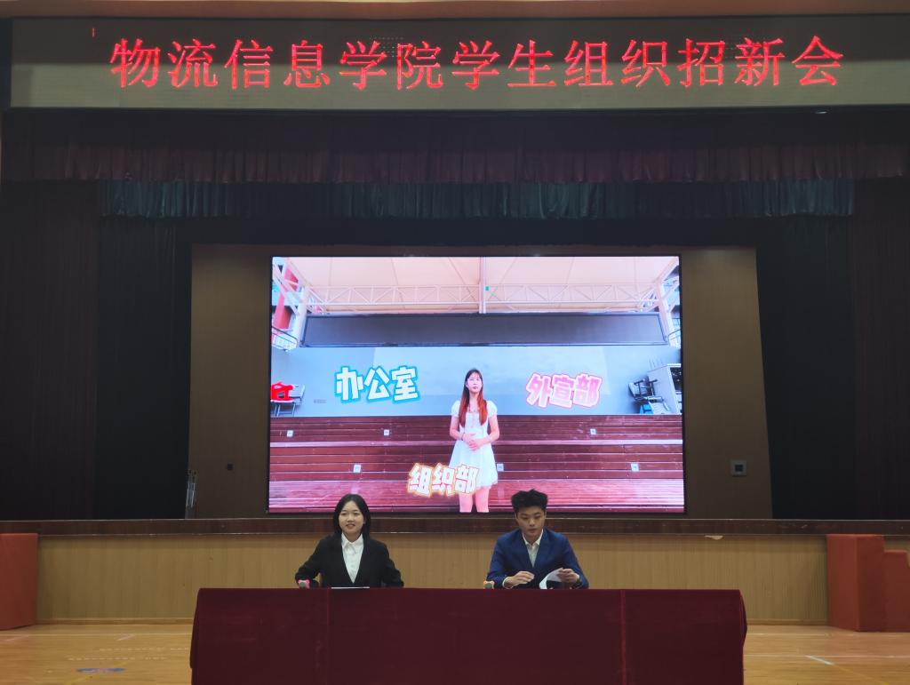 为扩充物流信息学院学生干部队伍,确保学生工作可持续的良性发展,同时为2023级新生提供一个锻炼自我、展示自我、提升自我的平台,我院于2023年10月7日在体艺馆举行2023年学生组织招新会,大会由物信院思团学学生代表孙李千娃、詹睿主持。