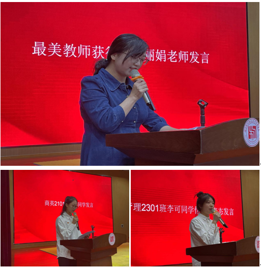 会上,唐彪宣读《阳光体育倡议书》,倡议同学们要学习有关健康锻炼知识,树立科学锻炼意识,制定锻炼计划,循序渐进地锻炼好身体。姚济国介绍学院基本情况和教学管理,要求学生有计划开展学习,学有所成。老师代表22-23年度学校最美教师获得者戴丽娟老师从凡事预则立,不预则废;悟从疑得,乐自苦生;纸上得来终觉浅,绝知此事要躬行三个方面,关心呵护学生,告诫新生以“开盲盒”式的期待去探索新领域,在学好课堂之外,积极参加金钥匙社团活动,投身社会实践,利用课余时间参加如英语口语、演讲写作竞赛、互联网+国际贸易、黄炎培、挑战杯比赛等,发挥自己潜能,以青春的智慧和热情去铺就未来的锦绣前程,笑迎人生的风雨,不负韶华,凑响青春最美丽的音符。老生代表商英2101廖广萍同学以自身的优秀成绩,鼓励学弟学妹们尽快适应大学生活,努力学习,以优异的成绩回报父母和祖国。新生代表酒店管理2301班李可同学作入学表态发言。