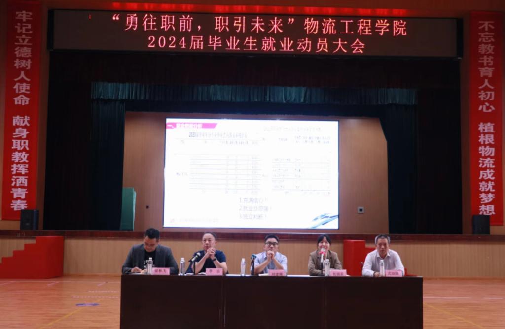 10月12日中午,物流工程学院2024届毕业生实习就业动员大会在校体艺馆举行。物工院党总支书记刘建辉、物工院院长杜丽茶、教学副院长沈治国、校企合作与就业处副处长李乐、办公室主任梁林飞及全体2024届毕业生出席此次会议,梁林飞老师主持会议,大会主题为“勇往职前,职引未来”。