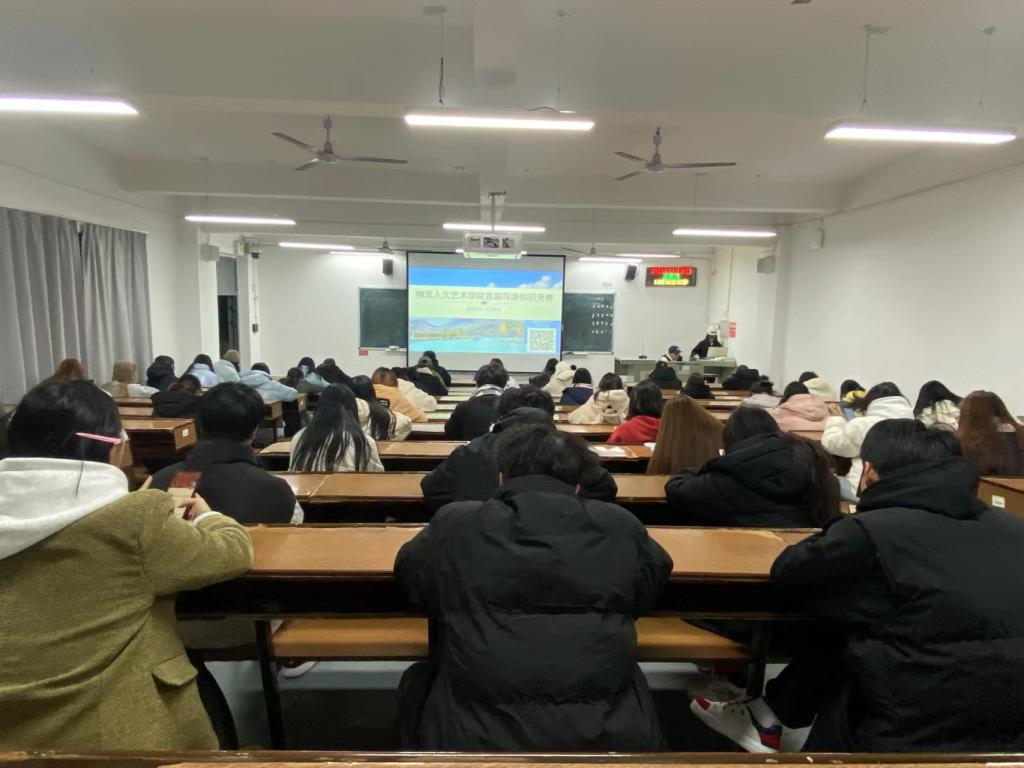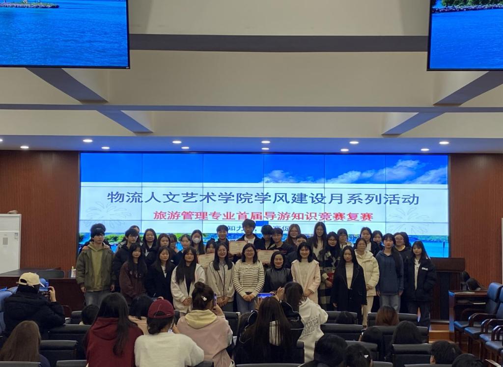 12月7日晚,物流人文艺术学院学风建设月系列活动之首届导游知识竞赛复赛兼决赛于明德楼四楼会议室圆满落下帷幕。物流人文艺术学院党总支副书记赖永晖、专职辅导员龚韵洁、专职辅导员潘子曦、兼职辅导员钟鹤,以及来自旅游管理专业和会展策划与管理专业共计130名学生参加本次活动。