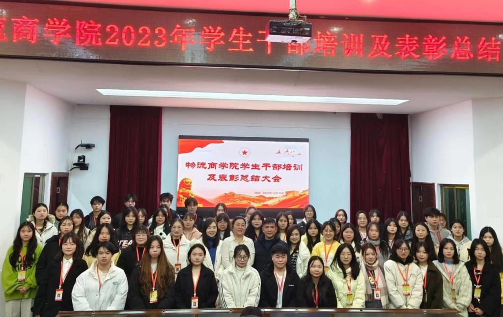 2023年12月15日晚上,在笃行楼一楼学术报告厅召开了物流商学院学生干部培训及表彰大会,党总支书记储昱、院长刘意文、思政指导老师李芳、团总支指导老师何莉洋、院思团学宿学生干部参加此次会议,大会由会计2305班邓安琪主持。
