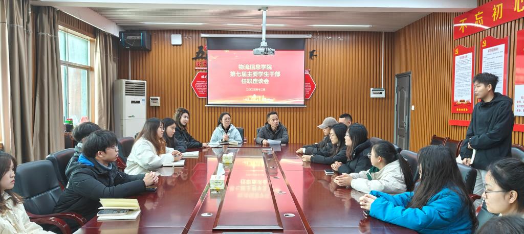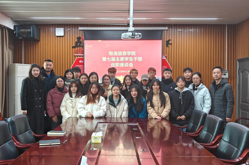 2023年12月15日中午,我院在崇技楼305党员活动室举行了物流信息学院第七届主要学生干部任职座谈会,党总支书记廖向阳、党总支专职副书记钟淼、学生干事龚俊铭、团总支书记雷瑶以及入选了第七届思团学宿的19名学生代表参加本次大会,本次会议由雷瑶主持。