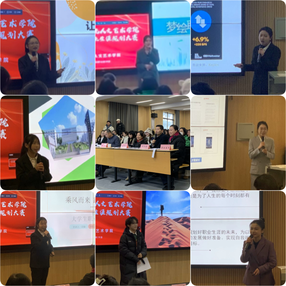 2023年12月19日14点,物流人文艺术学院大学生职业生涯规划大赛在教学楼100教室成功举办。本次大赛主题为“筑梦青春志在四方,规划启航职引未来”,旨在通过比赛,引导大学生树立正确的成才观、就业观和择业观,科学合理规划学业与职业发展,并为全省大学生职业生涯规划大赛选拔人才。校企合作与就业处处长刘淑一、物流人文艺术学院党总支书记李烁、圣爵菲斯大酒店餐饮部总监毕文建和圣爵菲斯大酒店人力资源部经理李玲西子担任评委;物流人文艺术学院党总支副书记赖永晖负责赛事组织;作品指导老师和近120名学生出席本次比赛。