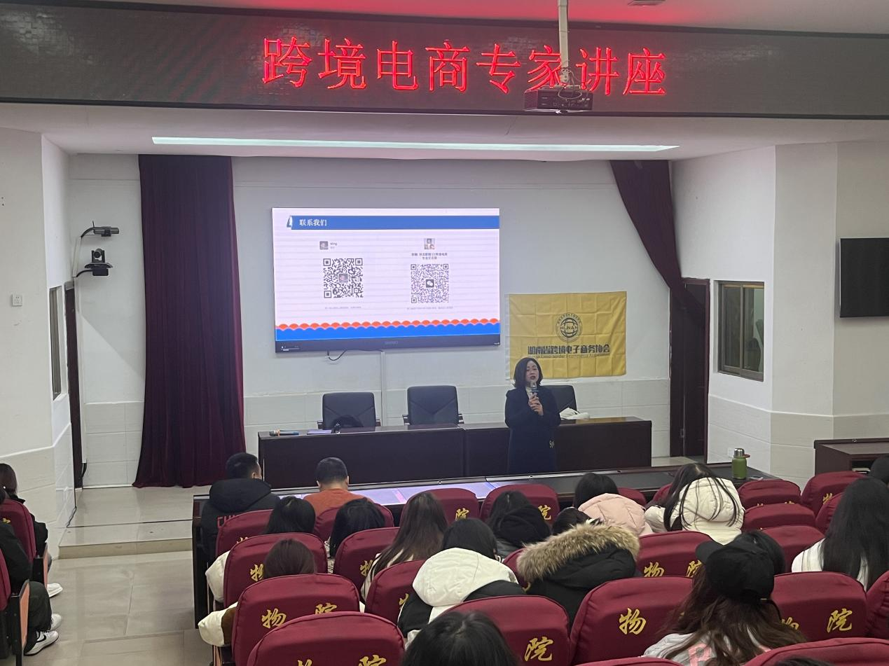 赖永晖致辞,她对王龙总做的精彩讲座表示肯定和感谢。赖书记对同学们提出了几点期盼:学好英语,作为跨境电商专业的基础学科一定要学好学扎实,欢迎同学们和她进行口语交流。更加积极参加活动和比赛,丰富自己的大学生活,用更饱满的状态去回馈自己的青春韶华!