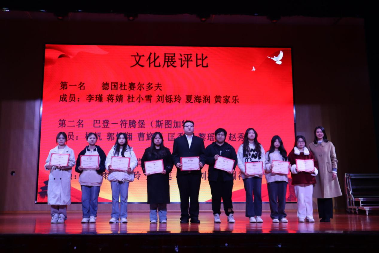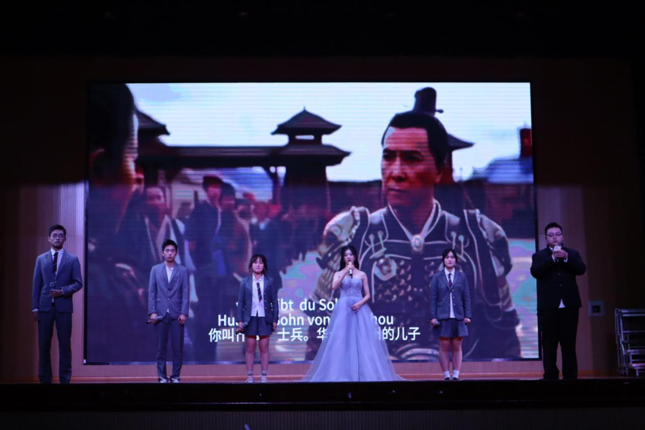 本次晚会节目形式多样,精彩纷呈,包括了舞蹈、小品、德语配音、中英文朗诵和德英对唱等,演员们的演出赢得现场观众热烈的掌声。本次晚会还为本次国际文化艺术节中获奖的同学颁奖。在演出结束后,蒋兴君、唐鹰尼、赵思慧等老师与全体演职人员一起合照。