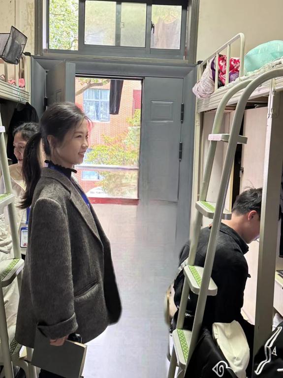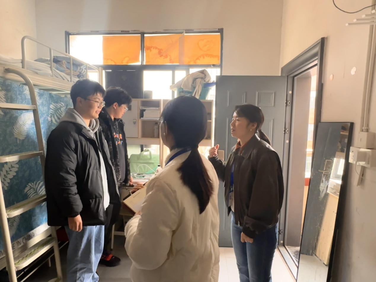 在查寝过程中,杜丽茶亲切问候返校学生,了解同学们目前在学习、生活中遇到的问题,实时为同学们答疑解惑、解决困难、提出建议,提醒同学们要劳逸结合,关注身心健康。并鼓励同学们要以饱满的状态迎接新学期的学习和生活。
