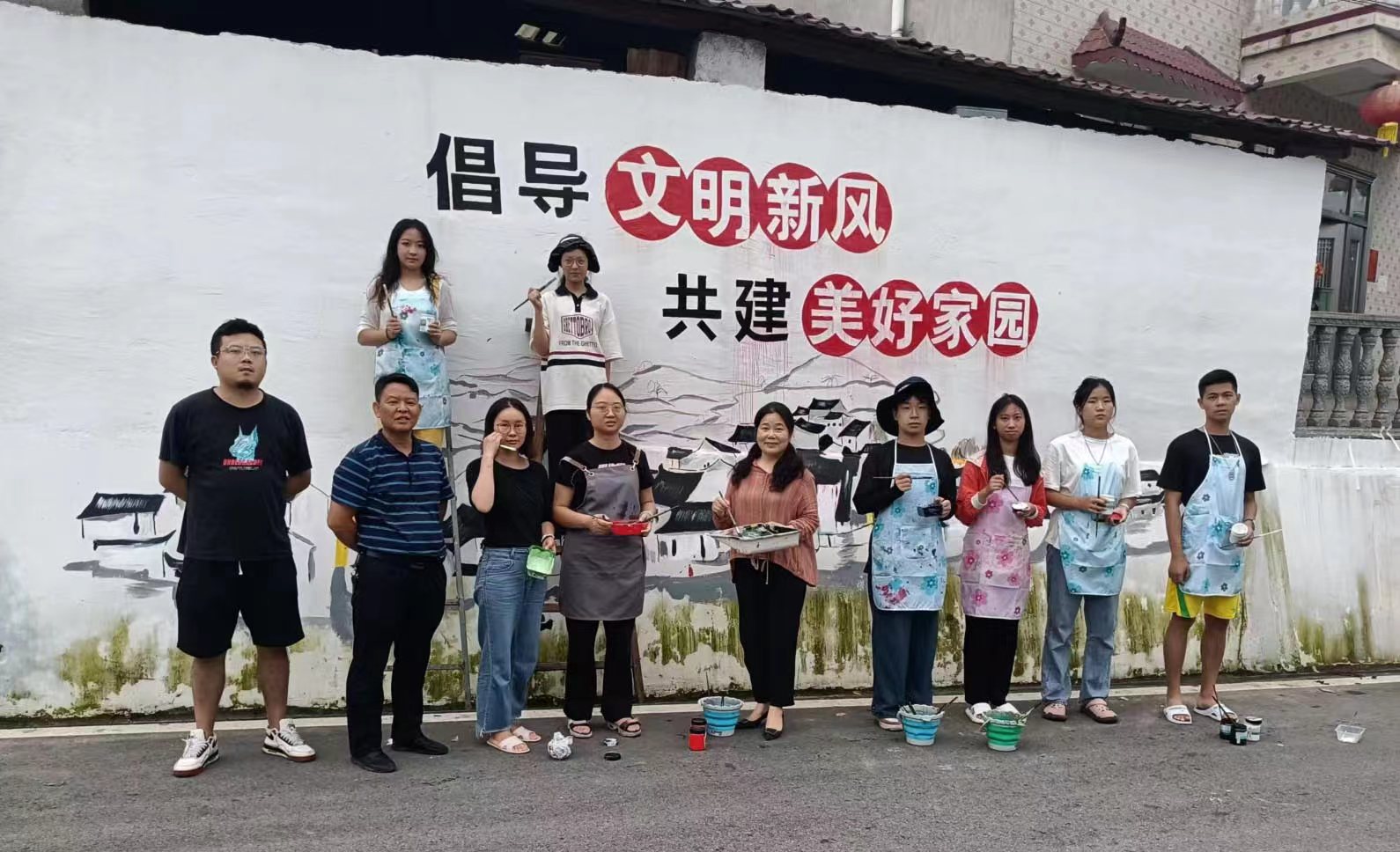 二是化身田园美妆师,让乡村美起来学院发挥包装策划与设计专业技术特长,组成“物兴包装”项目团队,化身美妆师,为大桥村精心绘制了20多块艺术墙绘,素朴的大桥村顿时有了艺术范,高出周围村寨几篾片。
