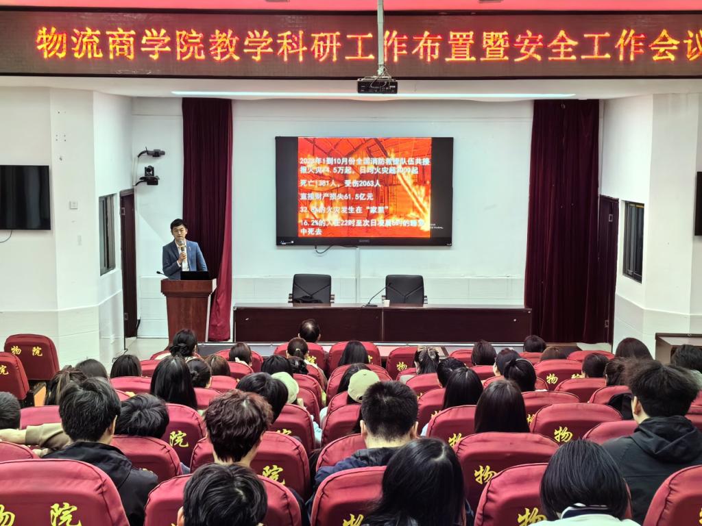 为统筹推进新学期学院工作,持续提升教学科研质量,同时进一步强化校园安全意识,落实好上级部门有关要求,提高全体师生的安全防范意识,扎实做好新学期校园安全工作。3月26日下午,物流商学院在图书馆学术报告厅召开教学科研工作布置暨安全工作会,会议由院长刘意文主持,学院全体教师及各班班长、安全委员参加会议。