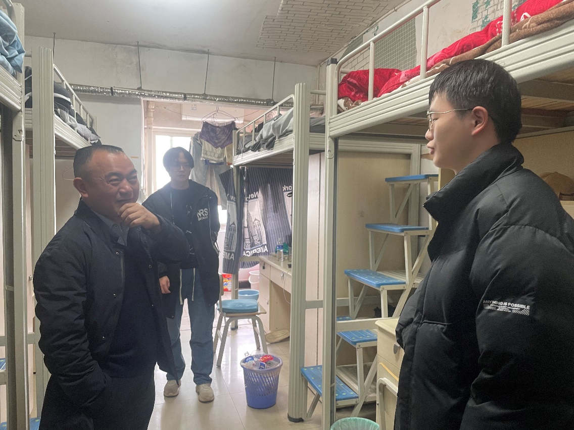 近日,物流管理学院开展了中层领导联系班级“春抚三月,沃土生花”下寝恳谈主题活动,党委书记龙吟、党委委员、副校长陈建华等领导先后深入学生寝室一线进行了走访,与学生亲切交流,了解学生急难愁盼的问题。