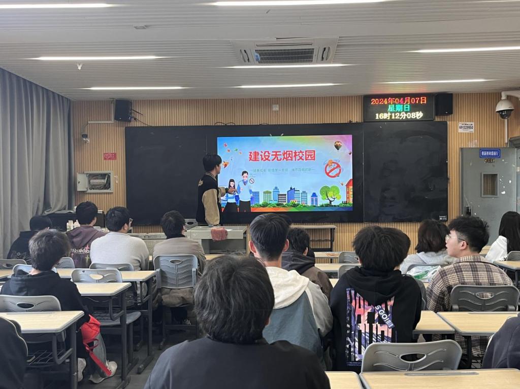 高琪昕老师和同学们分享了无烟校园建设的积极意义。她向同学们强调吸烟不仅危害个人健康,还影响周围人的健康,更影响整个校园的文化氛围和学习环境。呼吁全班同学自觉遵守相关规定,共同维护无烟校园环境,共同打造“无人吸烟、无烟味、无烟头”的美好校园环境。