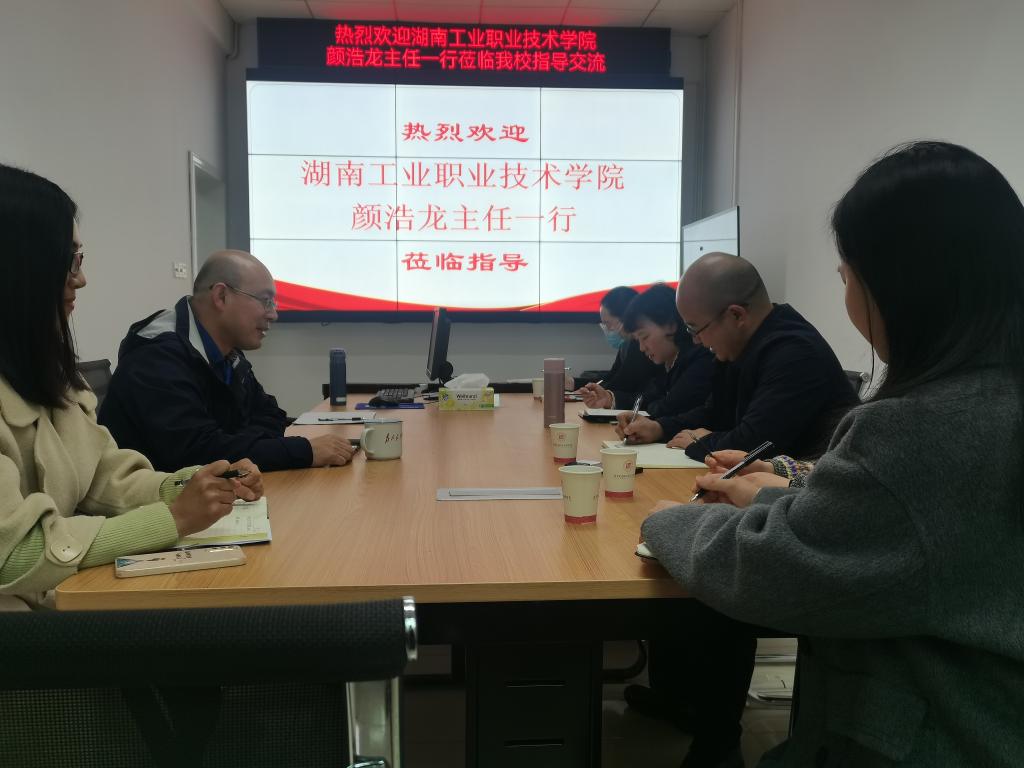 4月11日下午,湖南工业职业技术学院发展规划与职业教育研究中心颜浩龙主任一行五人到访我校,就双高校建设、重点项目推进、督导机制完善以及数据采集等关键议题与我校进行了深入且富有成果的交流。我校质量诊改与督导办负责人袁世军副主任主持此次会议,部门全体成员参加会议。