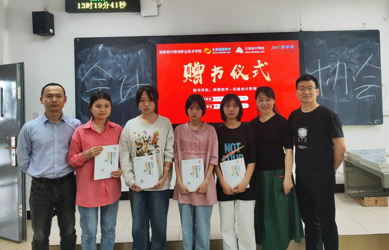 2024年4月12日中午13点,物流商学院与厦门网中网软件有限公司在学校教学楼202教室举行赠书仪式。物流商学院会计教研室主任王亚丽老师、厦门网中网软件公司湖南省总经理张峰、业务经理陈剑雄参加了赠书仪式。厦门网中网软件有限公司是正保远程教育的控股子公司,此次捐赠学校会计协会44套《初级会计实务》《经济法基础》应试指南辅导书。