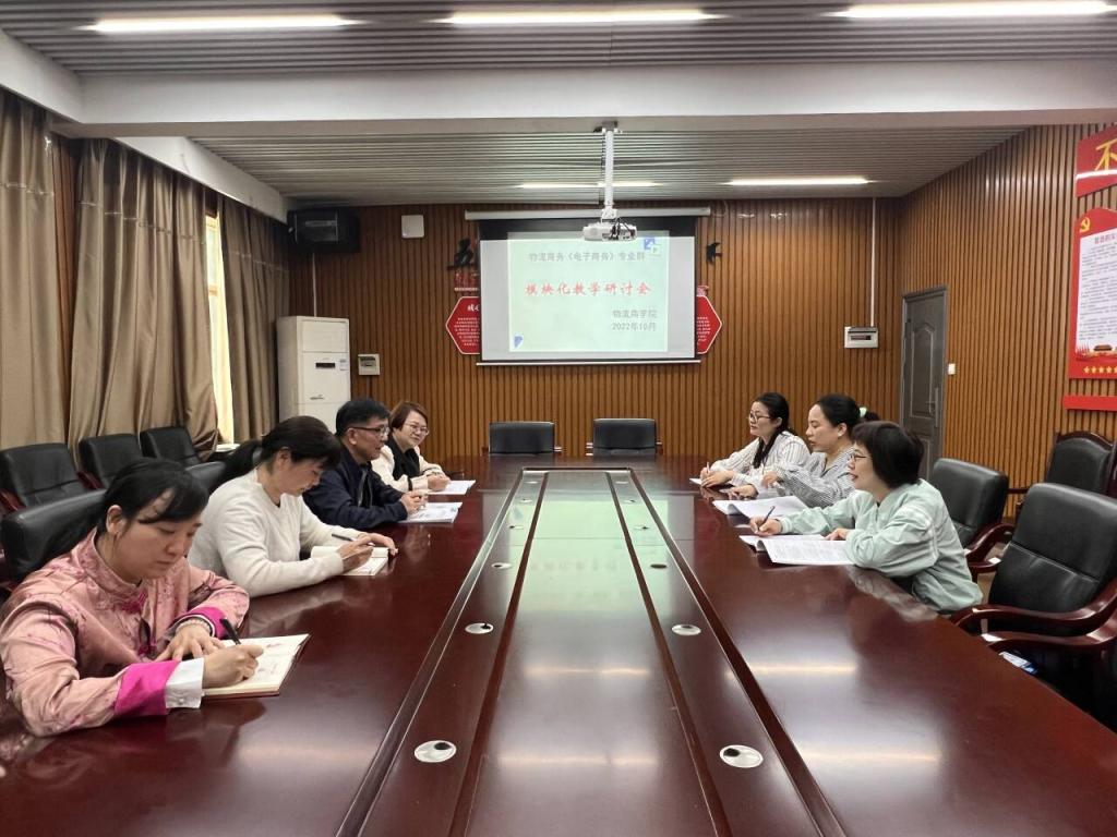 2022年10月11日,物流商务(电子商务)专业群在崇技楼305召开了模块化教学研讨会。会议由物流商学院院长刘意文主持,物流商务(电子商务)专业群负责人旷健玲教授、物流商学院办公室主任李丽、相关专业带头人和专任教师参加了研讨。
