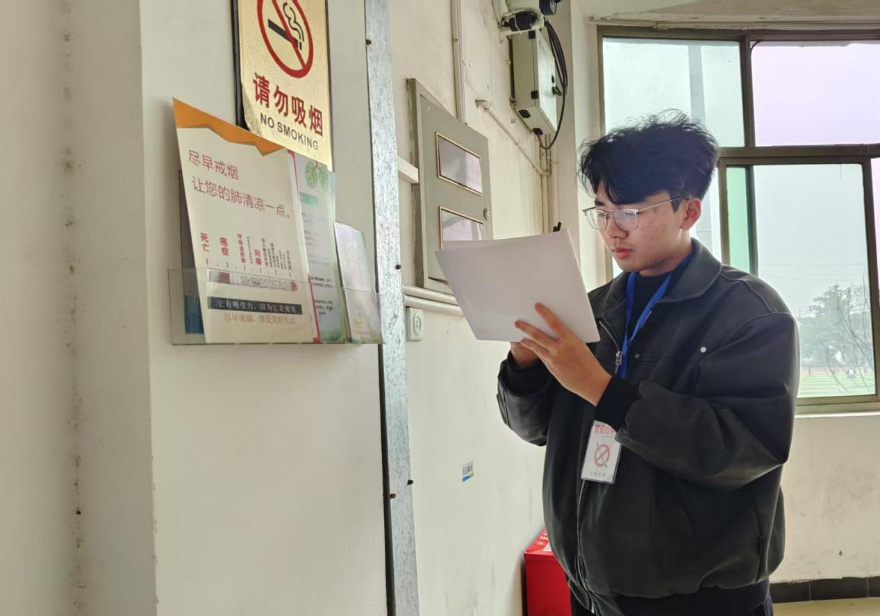 学生干事梁林飞在先锋队授旗仪式上提出:“要发挥学生干部的‘青春探头’作用,让禁烟巡查成为劳动教育的实践课堂。”学院构建“学生主体巡查、教师过程督导、领导靶向整治”三级巡查体系,以学生自查为主体,通过“禁烟先锋队”划分责任区,在课间、午间等重点时段开展网格化巡查,并成立禁烟专项工作组,将禁烟巡查纳入值班教师的岗位职责清单。