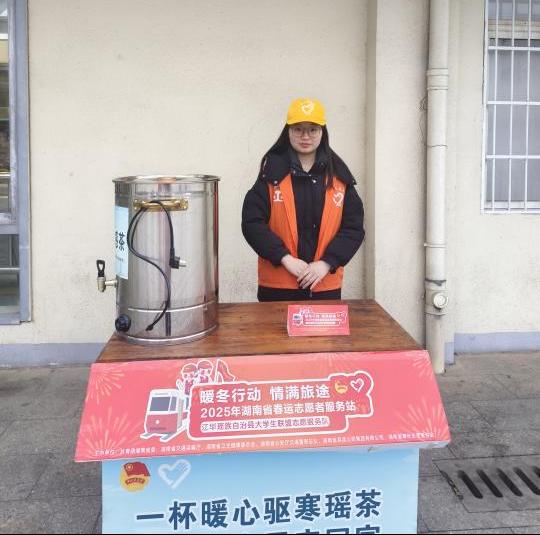 "大学生活是人生新的起跑线......"在江华瑶族自治县"瑶音传情,学子相携"宣讲会上,蒋林玉同学结合自身经历,分享高效学习策略和丰富多彩的大学生活,鼓励同学们珍惜时光,积极备考,并为大家提供了实用的学习压力调节建议,赢得了师生们的广泛好评。春运期间,这位瑶族姑娘又换上"志愿红",在火车站搭建起"瑶茶暖途"服务驿站,日均服务旅客200余人次,用热情和耐心温暖了旅客的回家之路,也为寒冷的冬日增添了一抹亮色。