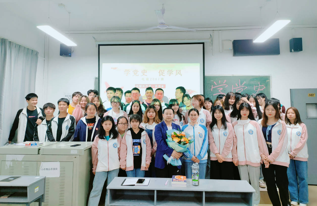 2021年5月17日晚上7点,物流信息学院电商一班在教507开展“学党史,促学风”主题班会。物信学院院长米志强,辅导员曾芳萍参会,班会由团支书唐家明主持。