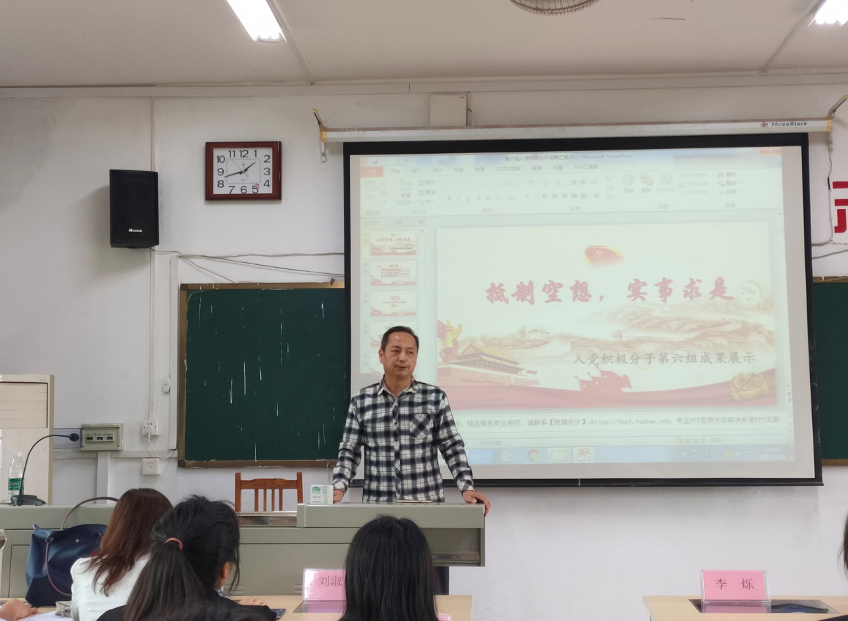 5月26日12点40分,物流人文艺术学院在崇技楼403教室举行第六期入党积极分子培训班结业典礼暨成果汇报会。出席本次结业典礼的老师有物流人文艺术学院党总支书记李烁、人文艺术学院院长刘淑一,学生干事刘富建、交通服务党支部书记刘威、涉外服务党支部书记刘洁、商务服务党支部书记赖永辉。培训班全体学员共五十二名参会。