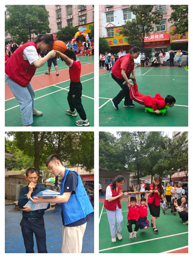 志愿者分成两组,一组分工协作,每两人带领一个班级与幼稚园老师一起组织小朋友们开展“童心向党,爱我中华”趣味体育运动。主要负责帮助照看因事未能参加本次活动家长的小孩,配合园长带领小朋友完成抬花轿、推小车、贴鼻子等主要游戏,同时保护孩子们的安全,维护现场秩序;另一组同与派出所同志一道向群众分发反电诈宣传小册子,向居民讲解防诈骗知识及诈骗类型,特别是电信和网络诈骗,还特意针对老年人、妇女等易受骗人群,讲解了一些真实发生的案例,现场解答了群众提出的各种疑问,为维护社区和谐稳定营造了良好的氛围。