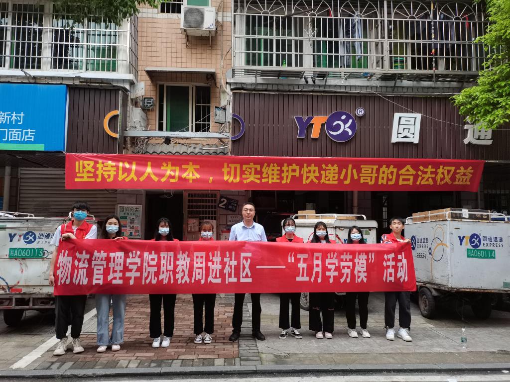5月30日,物流管理学院举行了学党史感党恩,职教周进社区——“创美守美五月学劳模”活动,参与本次活动的有物流管理学院党总支书记廖向阳、物流管理学院团总支书记李鑫、快递专业辅导员曾恋之及快递专业学生。