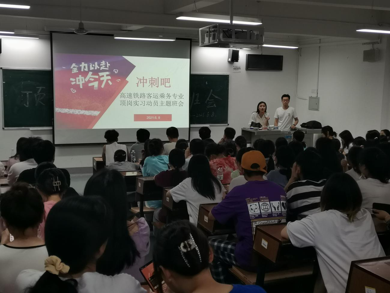 6月8日晚7:00,为了加强2019级同学们对毕业实习方面的了解,解决对毕业实习方面的各种疑惑,物流人文艺术学院高速铁路客运乘务专业的三个班集体在教学楼213教室召开了“讲述红色故事,汲取奋斗力量”暨高乘专业顶岗实习动员主题班会。主题班会由高乘1901班、1902班的辅导员左宛鑫老师与高乘1903班辅导员王根茂老师共同主持,物流人文艺术学院党委副书记、院长刘淑一老师莅临指导,解答同学们的困惑。