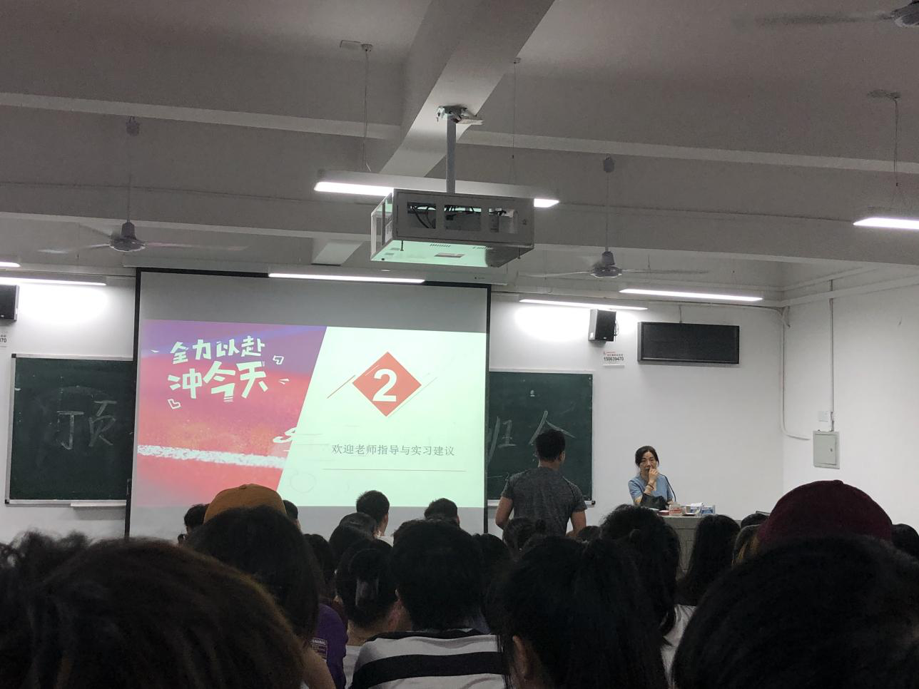 王根茂老师具体的为同学们逐字逐句地讲解了国家教育部、湖南省教育厅以及学校关于毕业实习的政策文件,带领同学们学习熟悉相关规定和实习纪律。