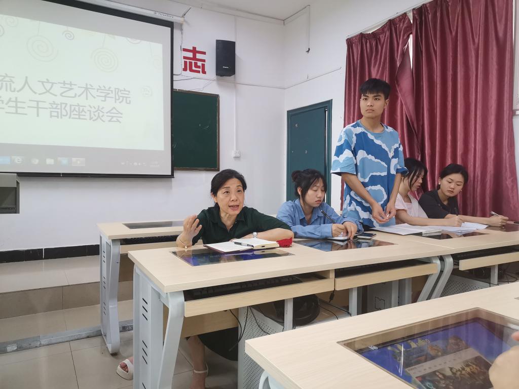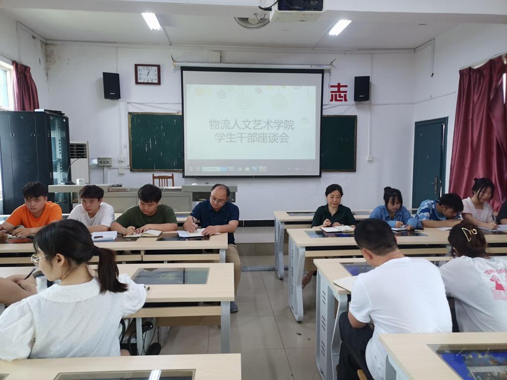 6月9日,物流人文艺术学院在崇技楼403教室举行了“我为群众办实事”学生干部座谈会。学院院长刘淑一、副院长姚济国、办公室主任汤愿、学生干事刘富建及20个学院学生干部代表参加座谈会。座谈会由学院院长刘淑一主持。