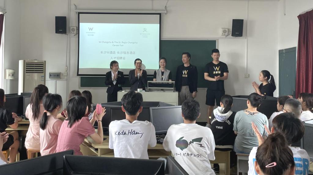 长沙瑞吉酒店代表曹雅涵女士进行企业介绍及企业文化宣讲,系统的介绍了酒店历史、定位、文化等方面的情况。同时对企业招聘的实习岗位及其工作范围、薪资待遇、岗位要求提出了明确的标准。