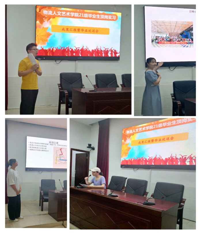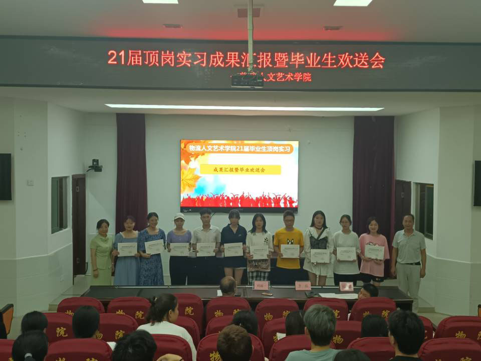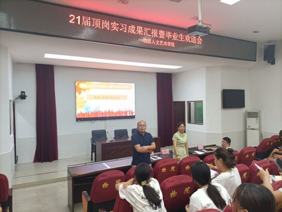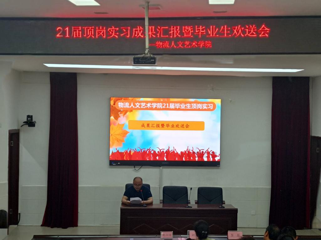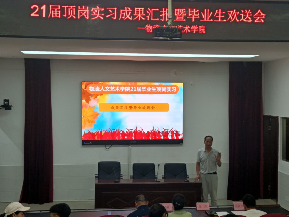 6月16日上午,物流人文艺术学院在学术报告厅举行21届学生顶岗实习成果汇报暨毕业欢送会。学院19级学生代表和18级返校毕业生180人参加。人文院院长刘淑一、总支书记李烁、人文院副院长姚济国、学生干事刘富建出席本次会议。