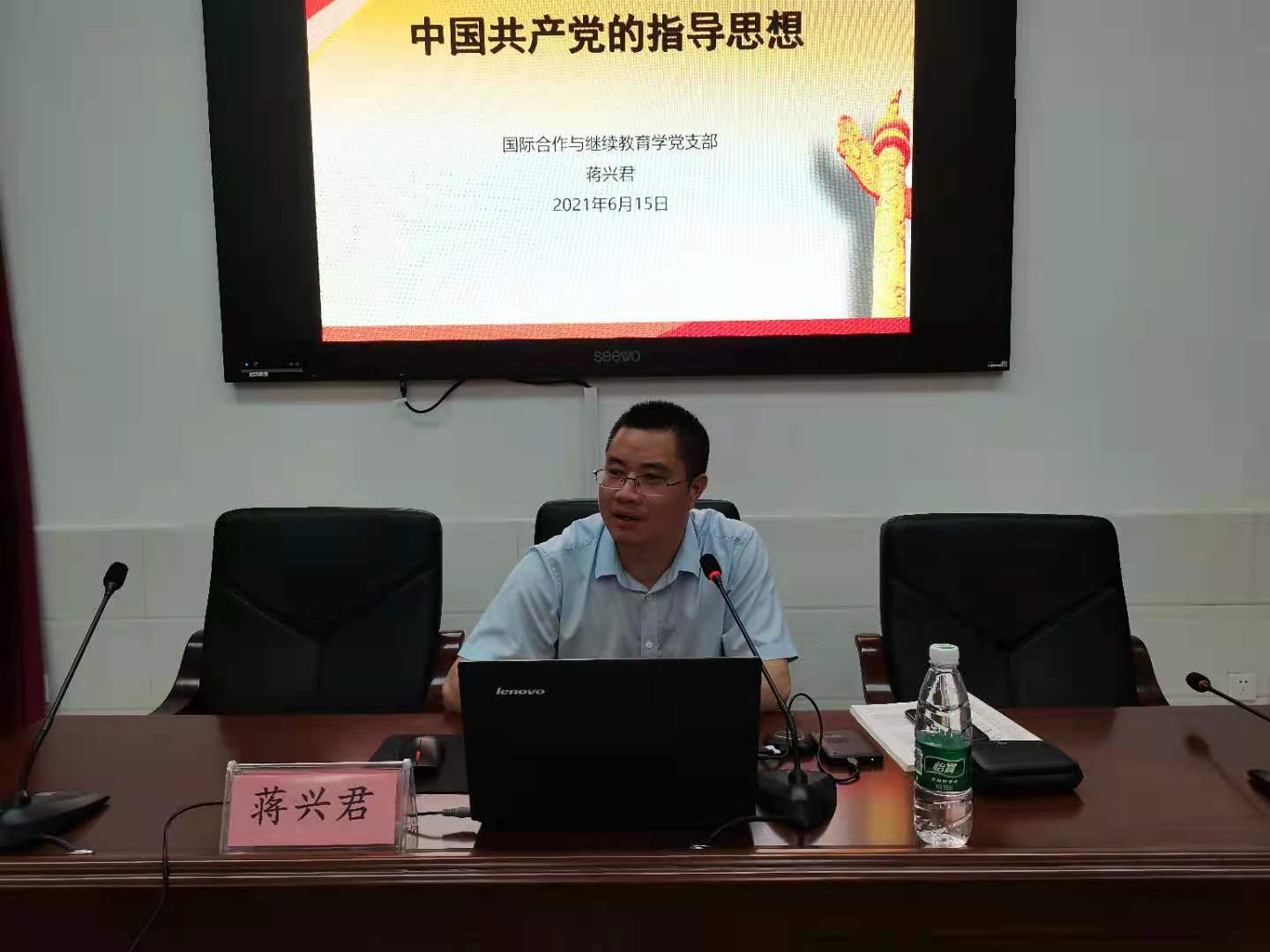 物流信息学院于2021年6月16日晚上19:00在学术报告厅开展了第四次党课培训课程,本次党课培训课程主题为《中国共产党的指导思想》,由国际合作与继续教育学院党支部书记蒋兴君主讲。