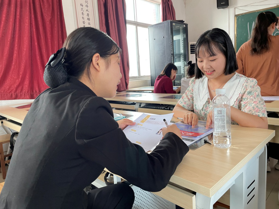 宣讲结束后,在崇技楼402、403、404、405以企业为单位分教室开展专场招聘会,分组对申请顶岗实习的学生进行面试。学生们根据岗位要求、自身素质等方面因素,选择自己心仪的实习岗位。会场上企业方与我院学生交流互动频繁,现场气氛活跃。