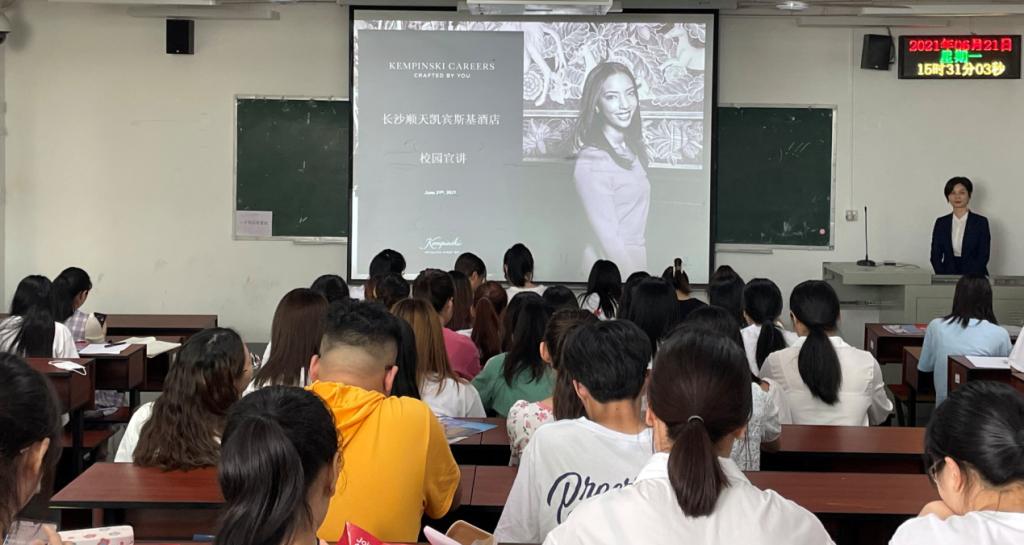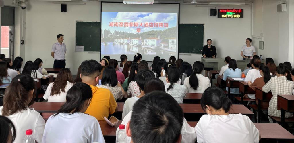 各企业代表开展了企业介绍与企业文化宣讲,系统的展示了各个酒店的历史、定位、文化等方面的情况。同时对学生感兴趣的实习岗位及其工作范围、薪资待遇、岗位要求等问题给出了明确的答案。