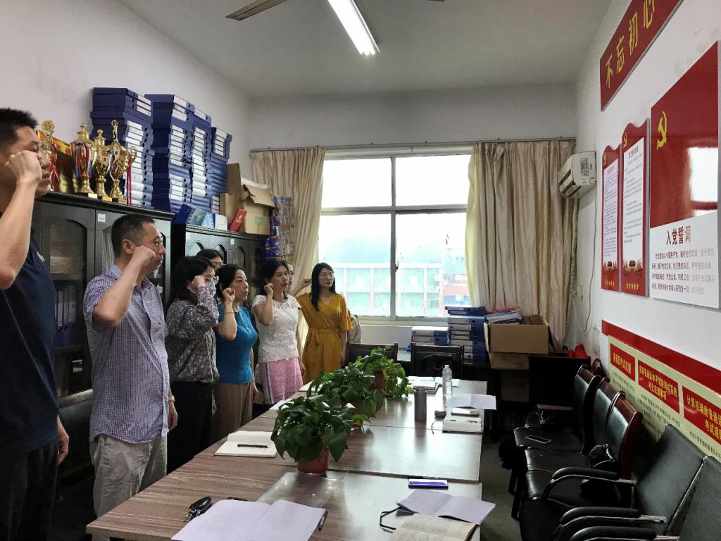 支部书记刘威同志带领全体党员同志重温入党誓词。接下来,刘威同志代表支部委员会向党员报告半年来党支部工作情况,主要包括开展党史学习教育情况、支部检视问题及整改措施等。