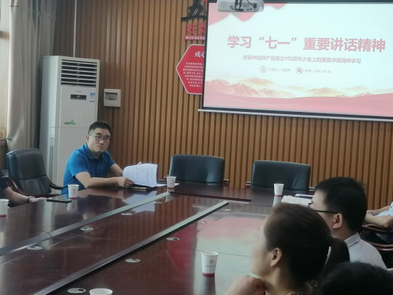 学院党总支书记刘建辉同志给全体党员上了一堂“学习七一重要讲话精神”为题的微堂课。党课从“‘七一’重要讲话的里程碑意义、中国共产党百年辉煌历程、伟大建党精神阐释、中国共产党从成功走向成功的‘九个必须’、寄语广大青年、向全体党员的伟大号召”六个方面串讲领学了“七一”重要讲话,重点分享了总书记讲话提出的一系列新思想、新观点、新要求,号召全体党员从讲话汲取思想伟力,结合自己的工作岗位,在第二个百年奋斗目标新征程上再立新功。