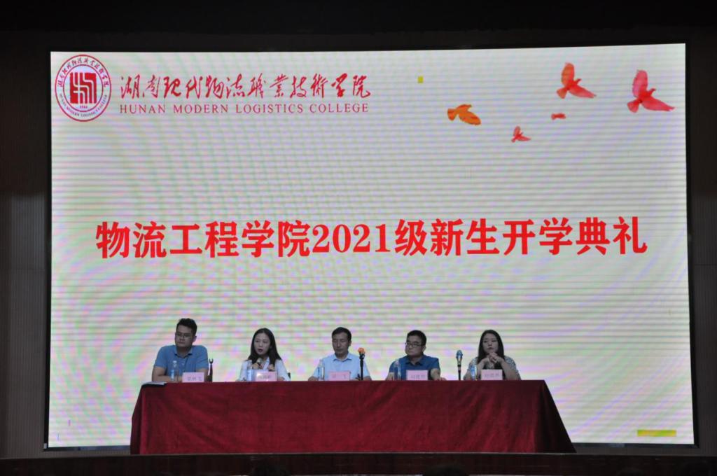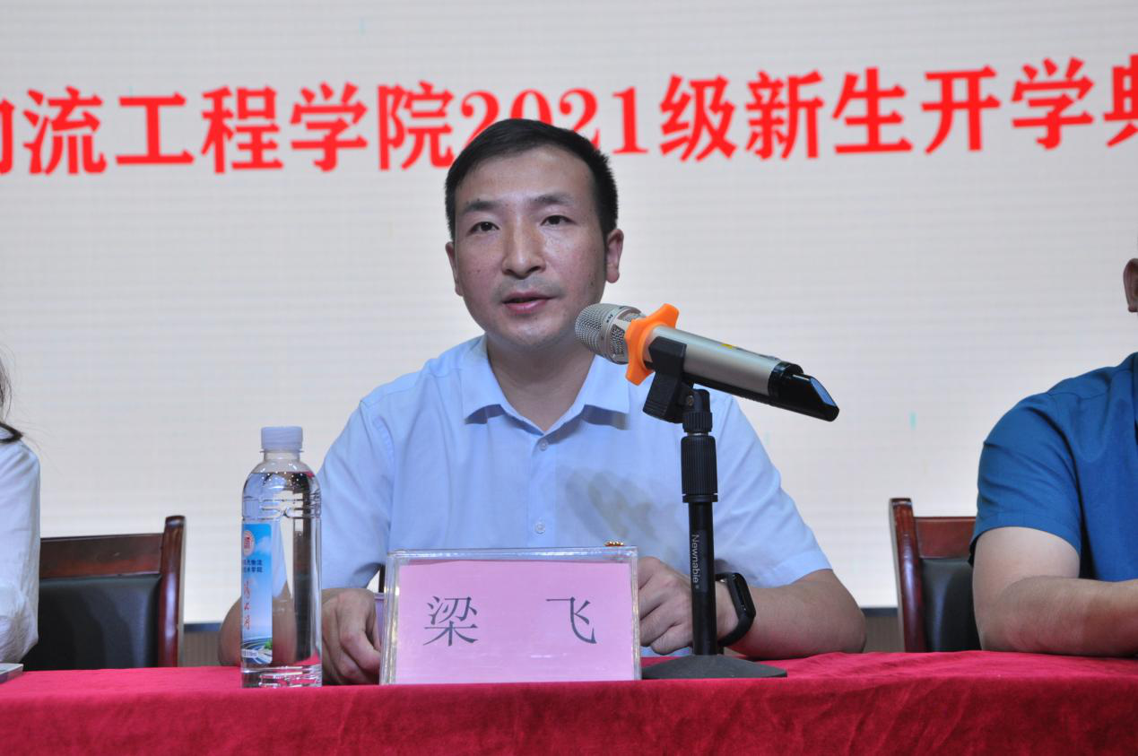 9月27日上午9点物流工程学院在体艺馆召开2021级新生开学典礼。物工学院院长梁飞、党总支书记刘建辉、教务干事高琪昕、学生干事梁林飞、团总支书记赵思惠、辅导员马菊出席大会,学院全体21级新生参会。会议由梁林飞主持。