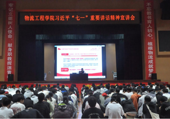 10月8日下午,物流工程学院召开学习习近平总书记“七一”重要讲话精神宣讲会。物流工程学院党总支书记刘建辉做宣讲报告。物工院全体新生参会。