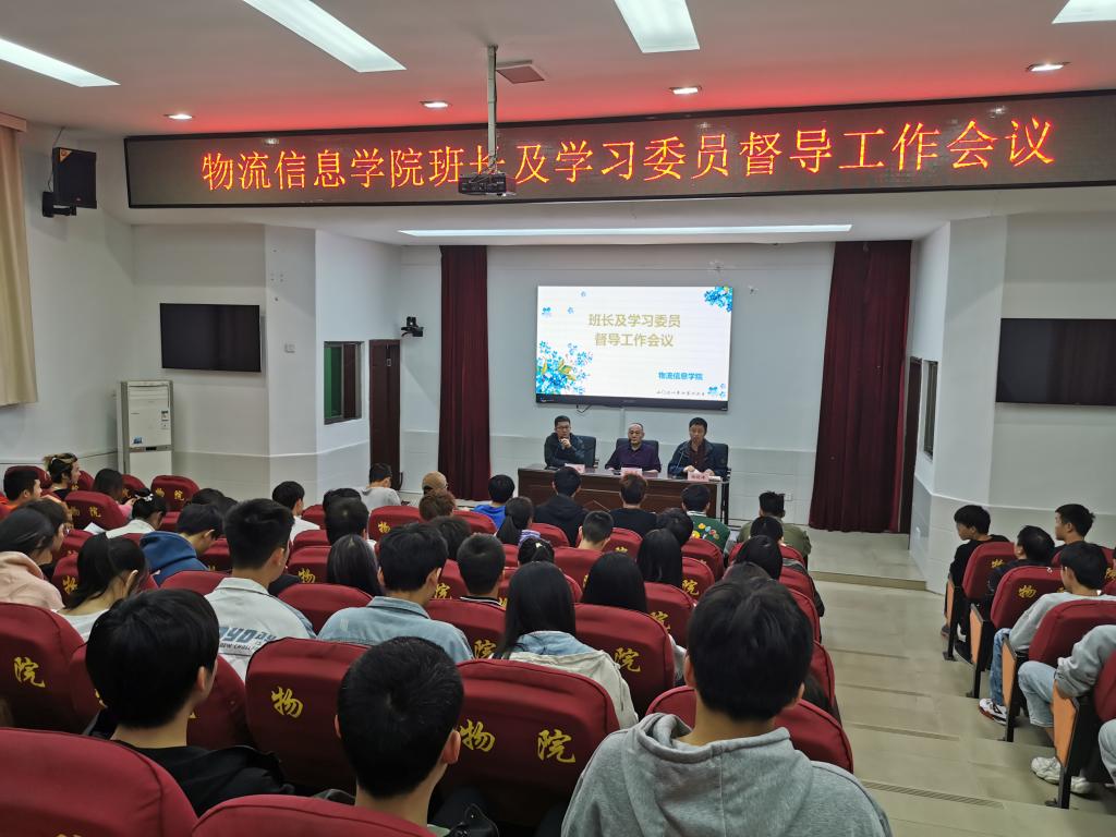 为加强学院学风建设,提高同学们学习热情,深入落实我院“三全育人”工作,物流信息学院于2021年10月12日下午四时,在学术报告厅召开学院19级、20级、21级班长学习委员督导工作会议。学院副院长杨晓峰、副院长谢金龙,办公室主任兼教学干事李阳参加了此次会议。会议由李阳主持。
