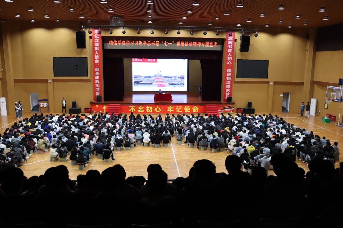 为深入学习贯彻习近平总书记在庆祝中国共产党成立100周年大会上的重要讲话精神,挖掘革命育人内涵,推动学院党史学习教育进一步走深走实。物流信息学院于2021年10月18日19:00在体育馆召开学习习近平总书记“七一”重要讲话精神专题宣讲会。宣讲会由物流信息学院党总支副书记、院长米志强教授主讲,物流信息学院全体20、21级学生及专兼职辅导员参会。