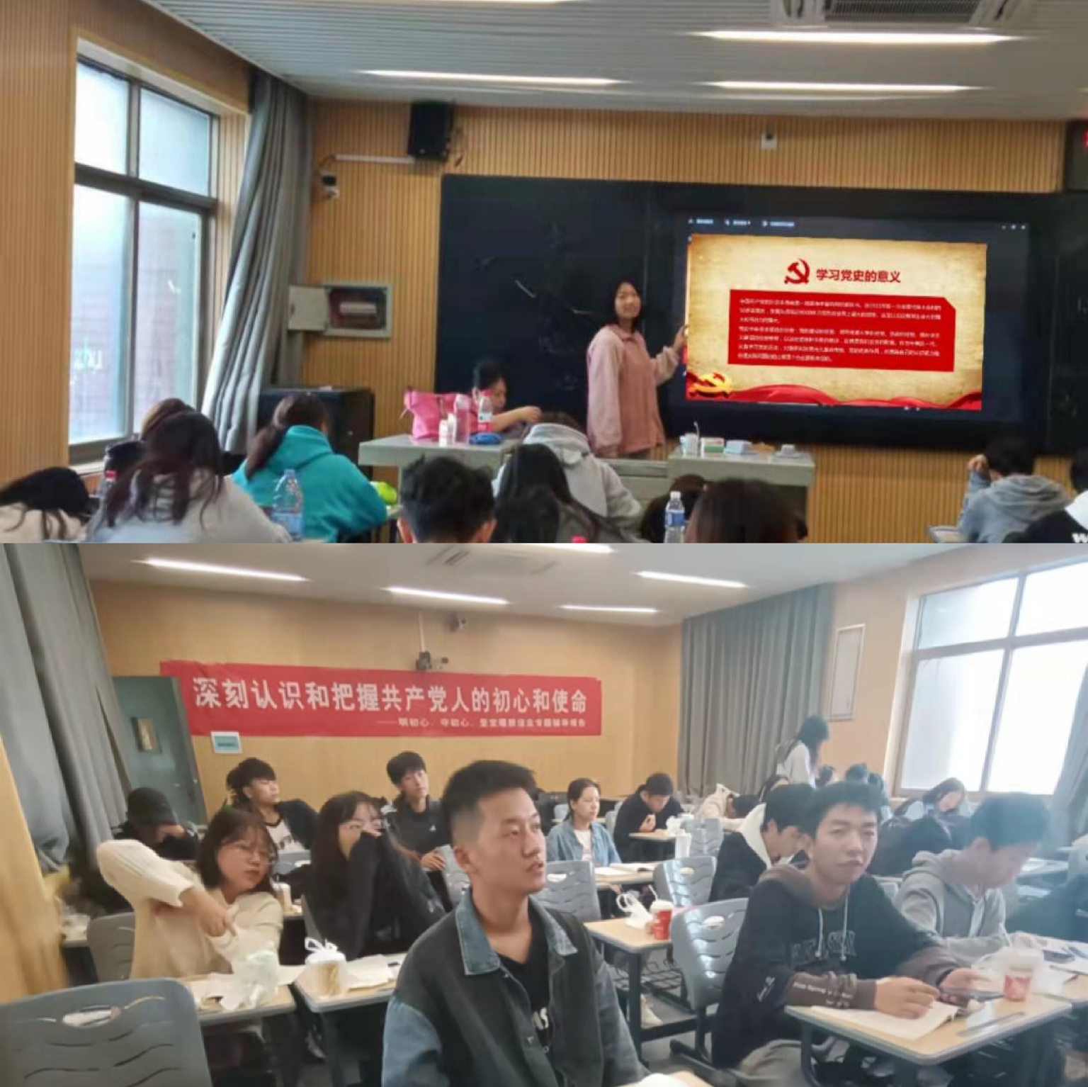 主题班会紧紧围绕“学史明理、学史增信、学史崇德、学史力行”的目标要求,从如何树立远大理想、踏实开启新学期新征程谈起,鼓励学生们要明确大学阶段的目标,发扬“建党精神”,通过不断学习,提升自己各方面能力。