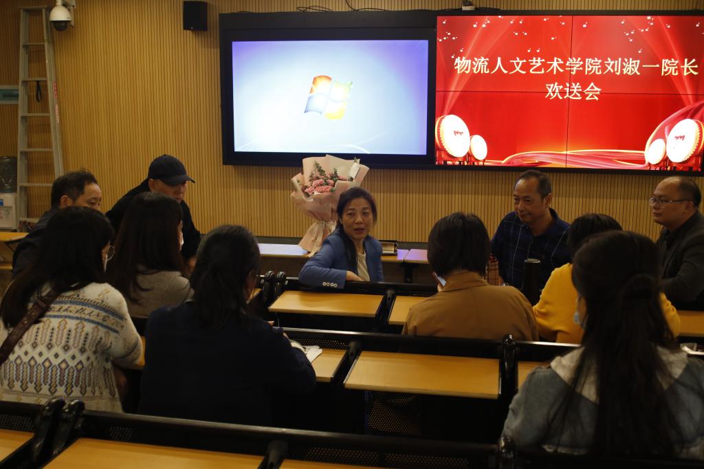 欢送会上,李烁书记主持会议,代表学院对刘淑一院长转岗表示真诚的祝贺。李烁书记对刘淑一院长为物流人文艺术学院倾情付出给予了充分的肯定,对她付出的辛勤劳动和贡献表示衷心感谢,希望刘院长在新的岗位上一如既往地关心与支持学院的发展。