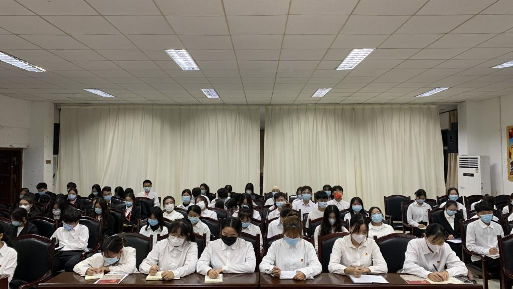 10月26日晚上6:30,物流商学院在明德楼四楼会议室召开了2021年第二期党校开班典礼。出席本次会议的有党总支书记储昱同志、学院院长、党总支副书记刘意文同志、党总支纪检委员王亚丽同志、党总支组织委员李丽同志、师生联合党支部党员师生、学生思想政治工作委员会干部以及2021年第二期入党积极分子,此次会议由党校班班主任李芳同志主持。