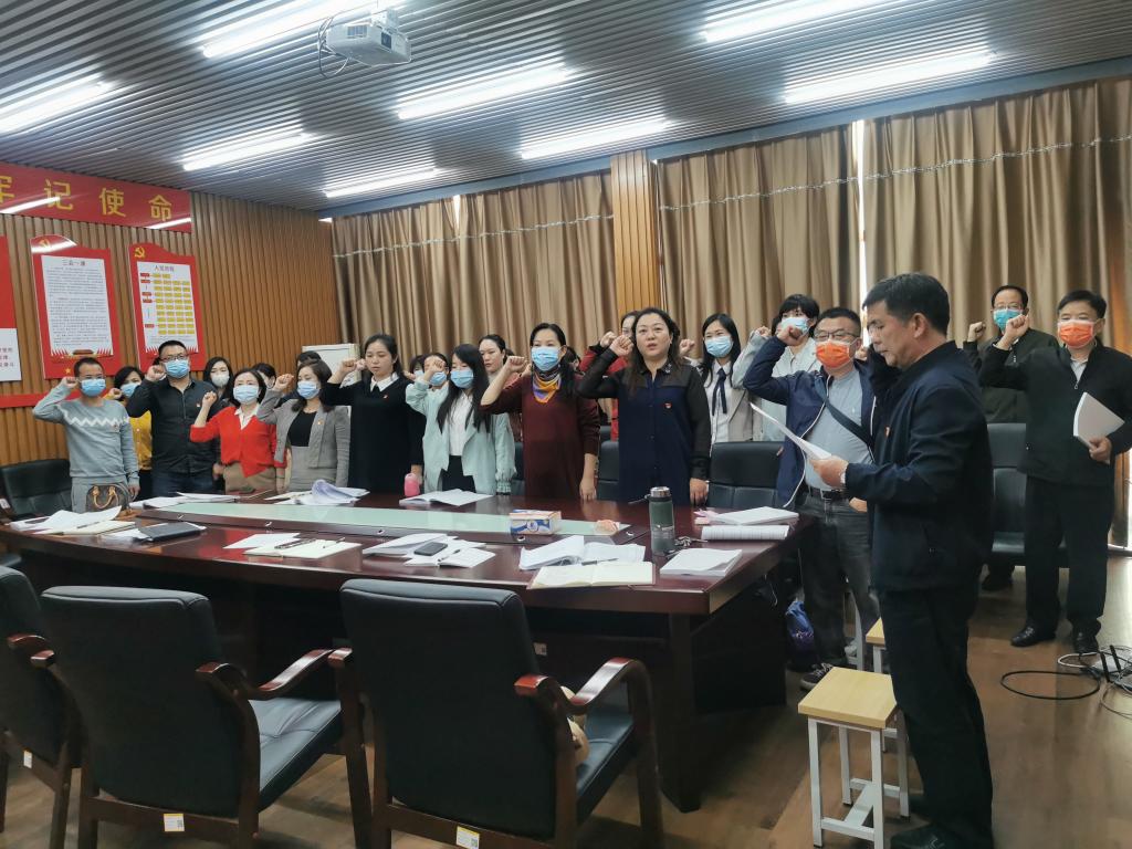 最后,学院院长刘意文带领全体教师进行宣誓仪式。通过此次学习,我院全体教师将继续坚定教师职业信念和职业操守,不辱使命,做好教书育人工作。