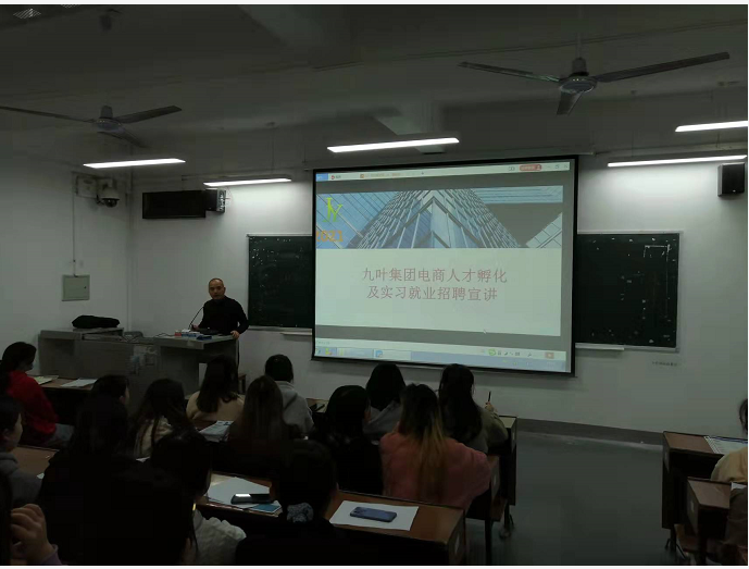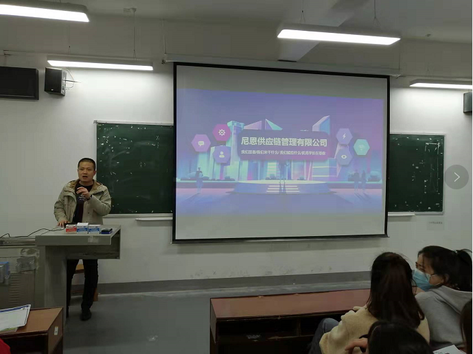 11月9日,物流人文艺术学院2019级商务英语专业第二次组织企业来校进行顶岗实习宣讲。结合商务英语专业的人才培养目标,本次组织了尼恩国际供应链有限公司、天翼通国际货运代理有限公司、深圳九叶集团、海普信息技术有限公司、华运国际物流集团、迅达国际货运代理有限公司、雅得美国际货运代理有限公司等7家涉外企业。这些企业提供的岗位有外贸业务,国际客服,国际单证操作,跨境电商运营、英文客服等与商务英语专业密切相关的岗位70多个。