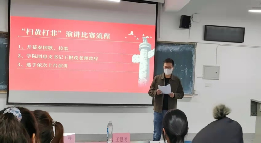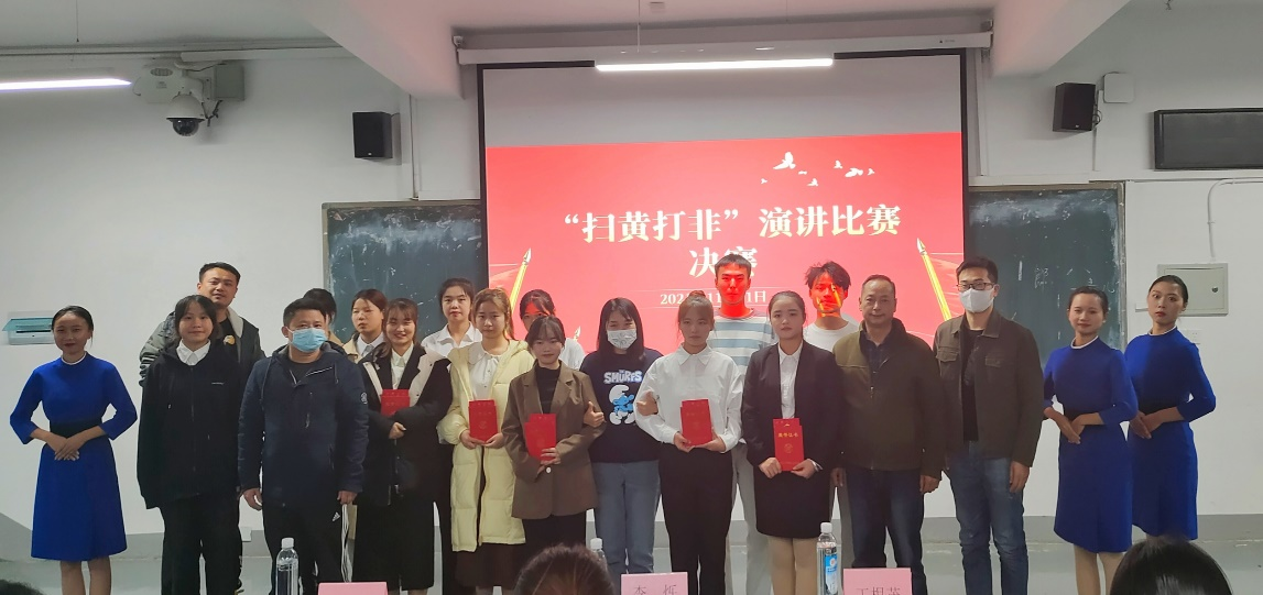 为全面引导广大学生远离“黄”“非”毒瘤,打造阳光健康、积极向上的文明校园,落实“扫黄打非”相关文件精神,特举办“扫黄打非”主题演讲比赛,历时二十天,经过各班级、各年级层层选拔,经学院团总支初赛,12位选手脱颖而出,晋级到本次扫黄打非主题演讲比赛的决赛。