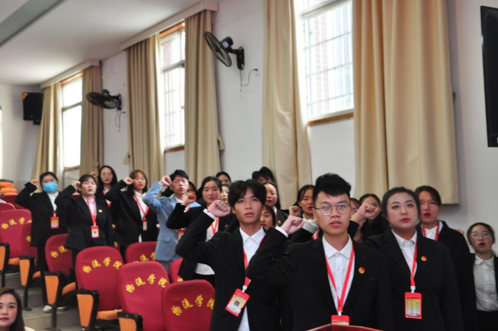 首先,学生干部代表会计2001班李龙圆进行发言,其次,由刘意文宣读表彰名单并颁发荣誉证书,接着,李芳宣读第五届思、团干部任职的决定文件并颁发聘书,郑朴生宣读第五届学生会干部任职的决定文件并颁发聘书。紧接着,第五届新委员宣誓表明决心。