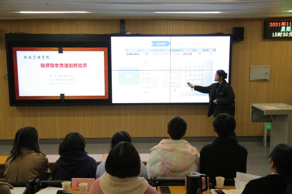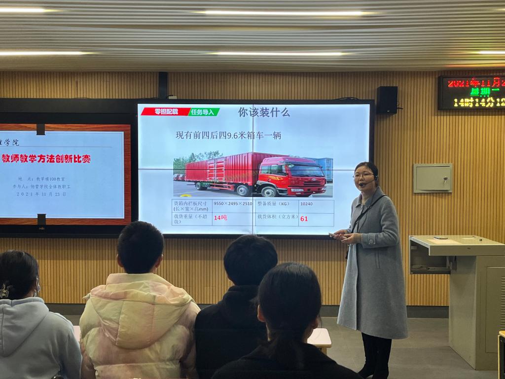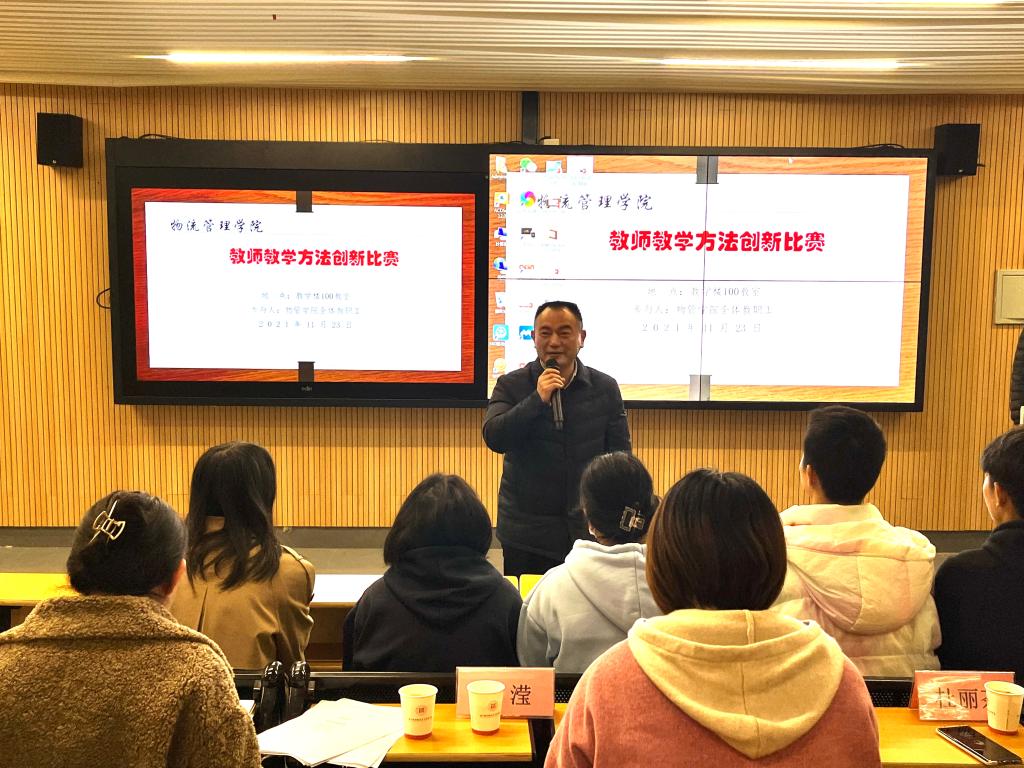 为深入推进现代物流管理国家职业教育教师教学创新团队建设,加强“双师型”教师队伍培养,不断深化学院教师、教材、教法改革,物流管理学院于11月23日下午举办了2021年物流管理学院教师教学方法创新比赛。学校党委委员、副校长陈建华出席并讲话,比赛邀请物流工程学院院长杜丽茶及湖南铁路科技职业技术学院余滢教授、湖南工业职业技术学院王艳艳副教授担任评委。全院教师共计50余人次在现场观看了此次比赛。